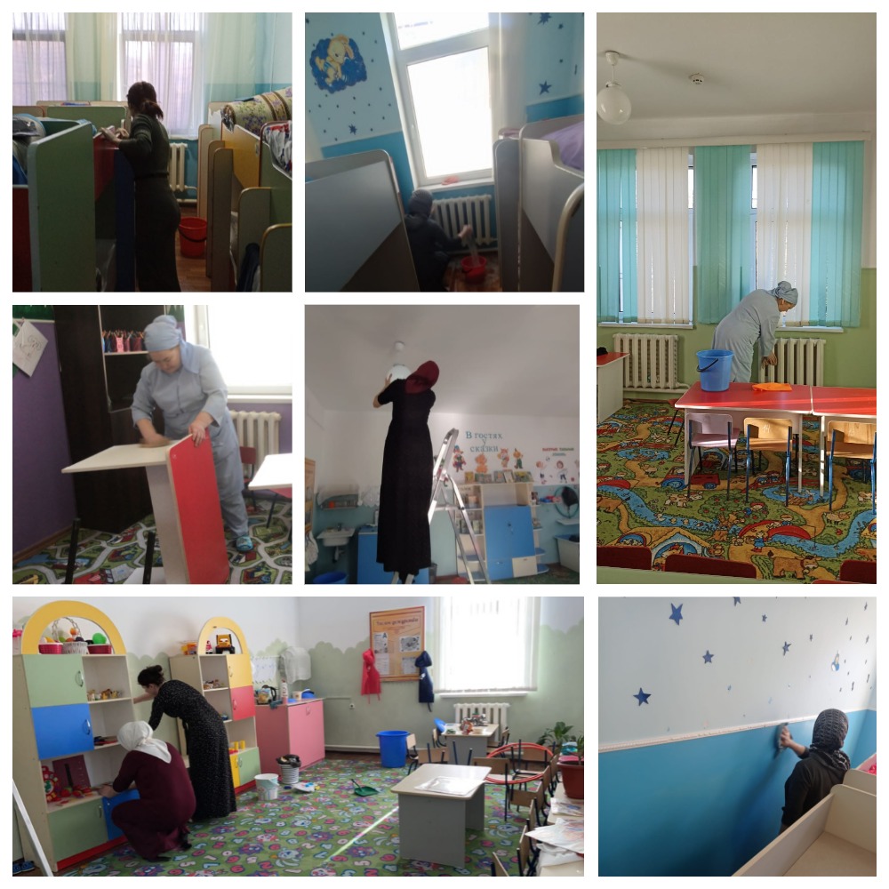 12.02.2022Коллектив МБДОУ "Детский сад "Солнышко" с. Шатой провел субботник на территории ДОУ с применением дезинфецирующих средств рекомендованных Роспотребнадзором. Была проведена обработка всех контактных поверхностей. Проветривание и обеззараживания воздуха в помещении.